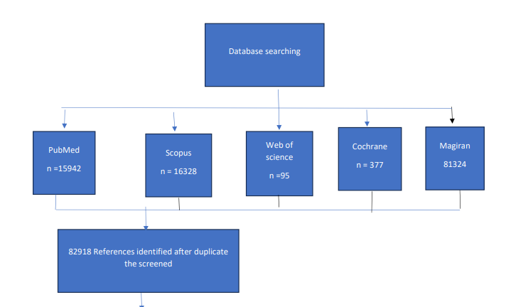 Studies were identified by searching electronic databases. Search were conducted to August 2024 in the MEDLINE database through PubMed, the Social Science Citation Index (SSCI) via Web of Science, the Cochrane Library, Scopus, and Magiran without date restrictions using the search strategy (