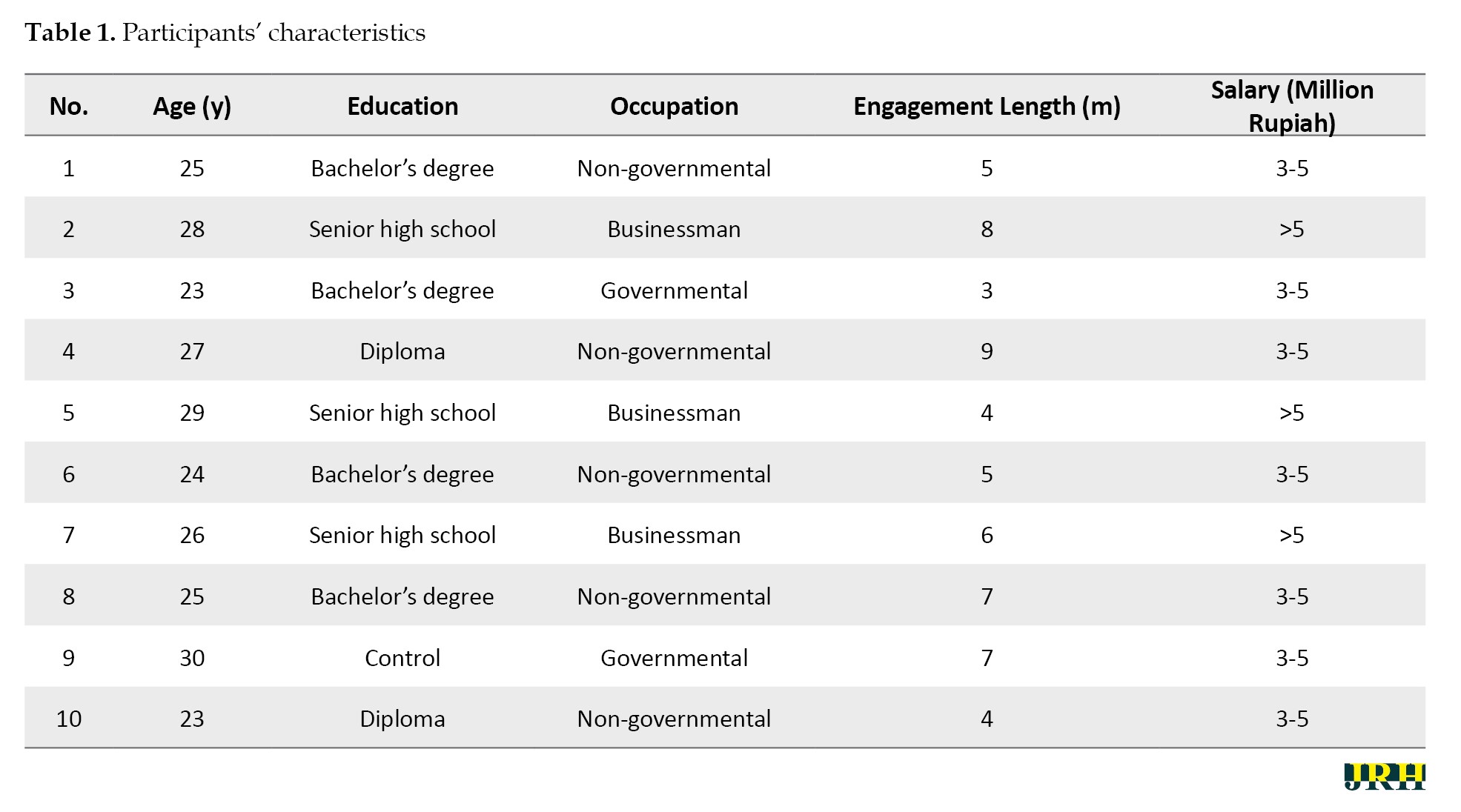 In the qualitative research, the number of participants interviewed to reach data saturation was 10 couples, allowing the data collection process to be carried out comprehensively. Data saturation occurs when no additional information is provided by other respondents, or when the data obtained has already been shared by previous respondents. The characteristics of the participants are shown in