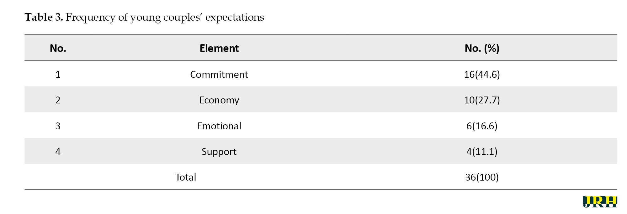 The total number of respondents was 30, but the frequency of young couples’ expectations was 36, as some respondents provided information about their expectations using more than one term. The researcher allowed flexibility for respondents to capture a comprehensive picture of the expectations among Indonesian young couples.