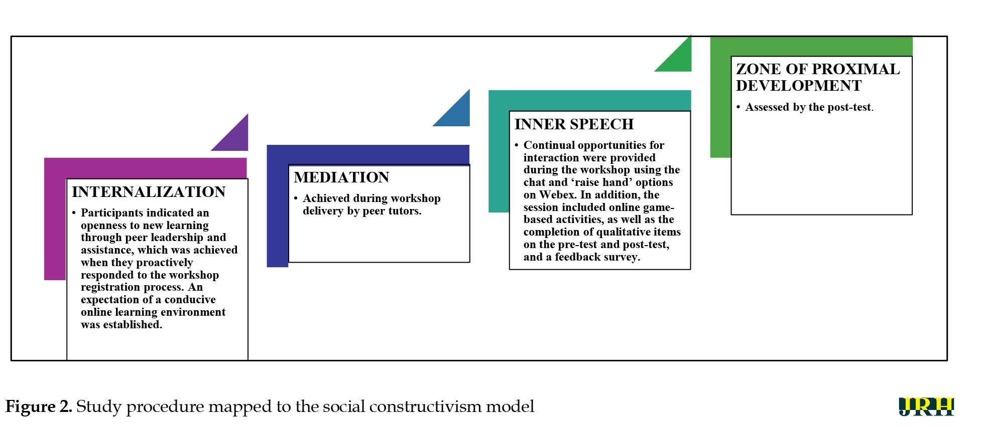 Globally, health promotion and health awareness programs in online mode are increasing, especially following the COVID-19 pandemic. Research has indicated the efficacy of such online interventional sessions [18, 19]. In addition, the advantages of online health promotion programs include being able to reach a larger proportion of participants/audience and utilizing a lower extent of resources [20]. Theories of online learning state that one of the most effective designs of online content delivery would be through a community-centered lens. This is based on Vygotsky’s concept of social constructivism and social cognition. In this scenario, students would work together in an online learning context to create new knowledge [21].
