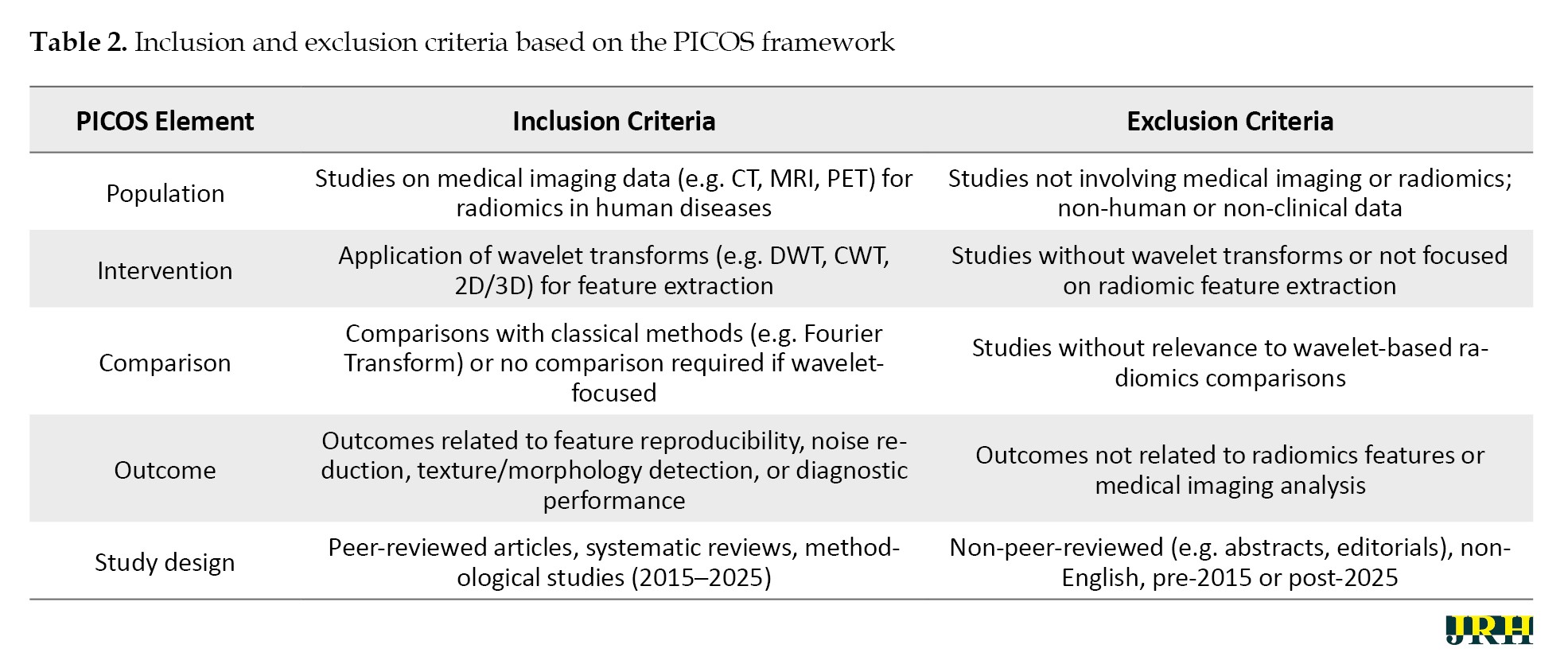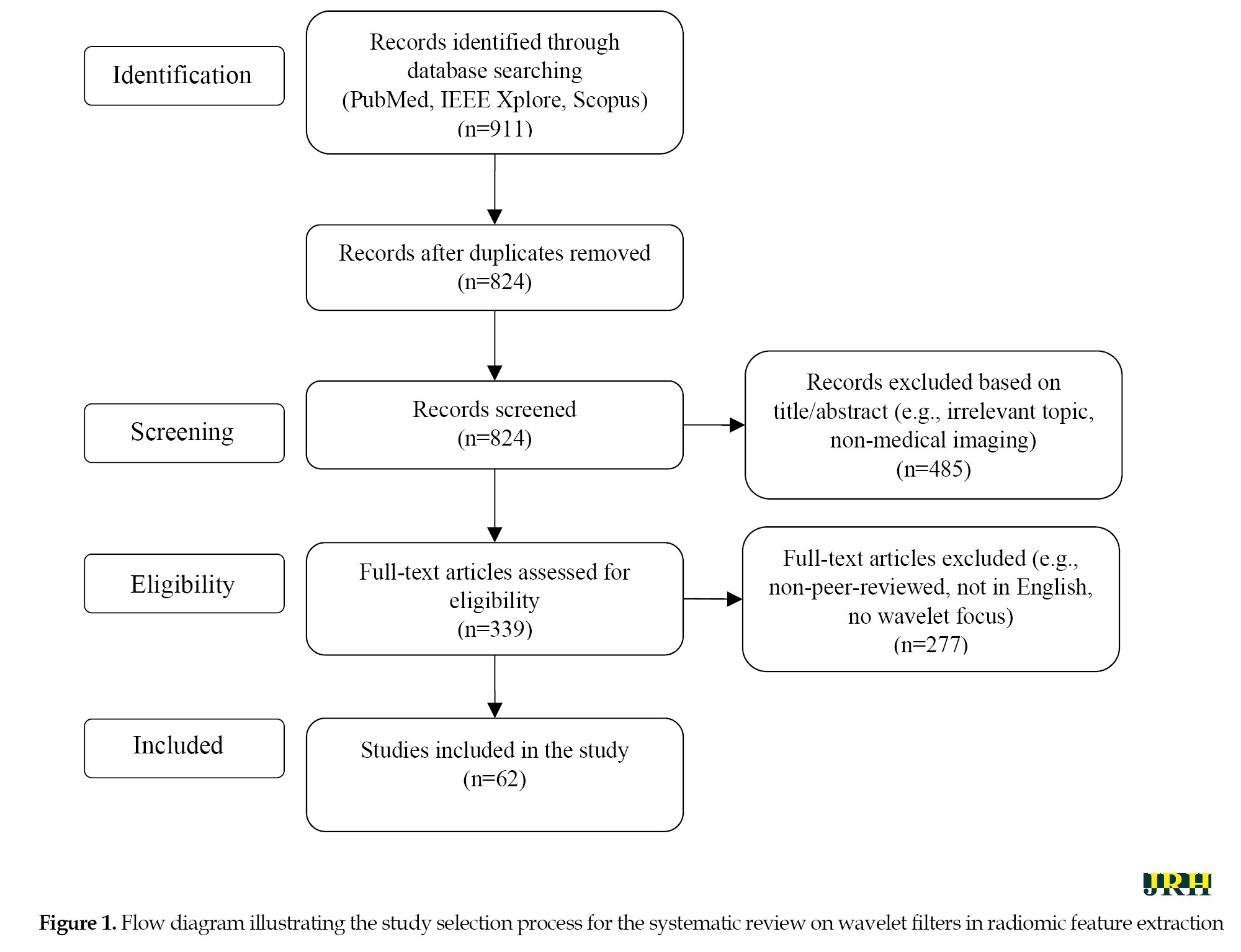 This review systematically evaluated the application of wavelet transforms for radiomic feature extraction in medical imaging, focusing on their mathematical foundations and practical implementation. The review adhered to a structured methodology to ensure comprehensive coverage of relevant literature, as outlined below.