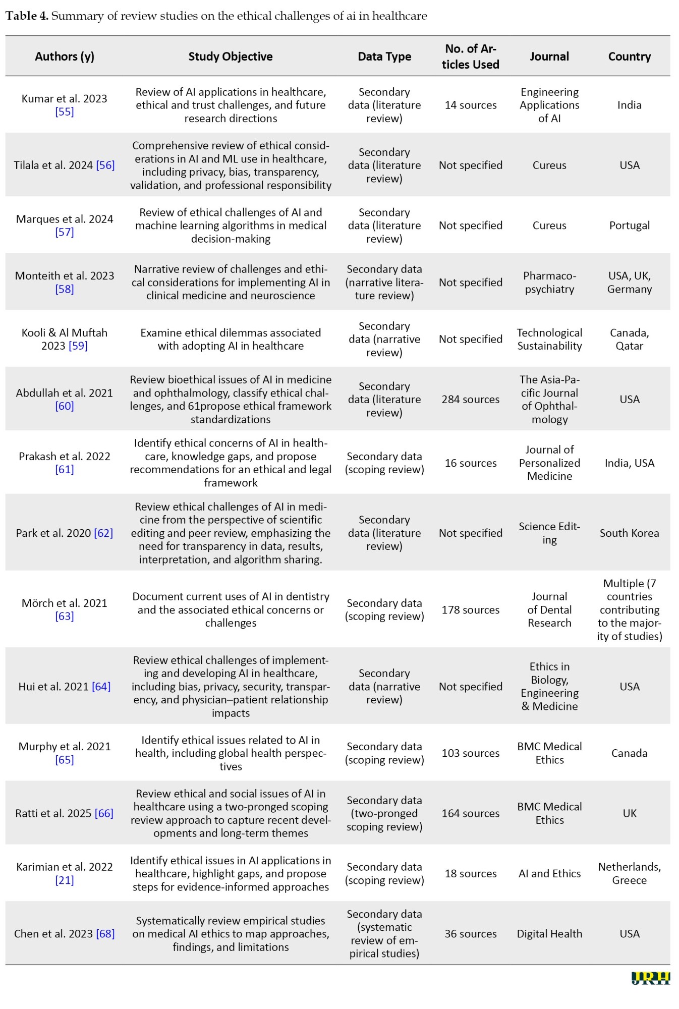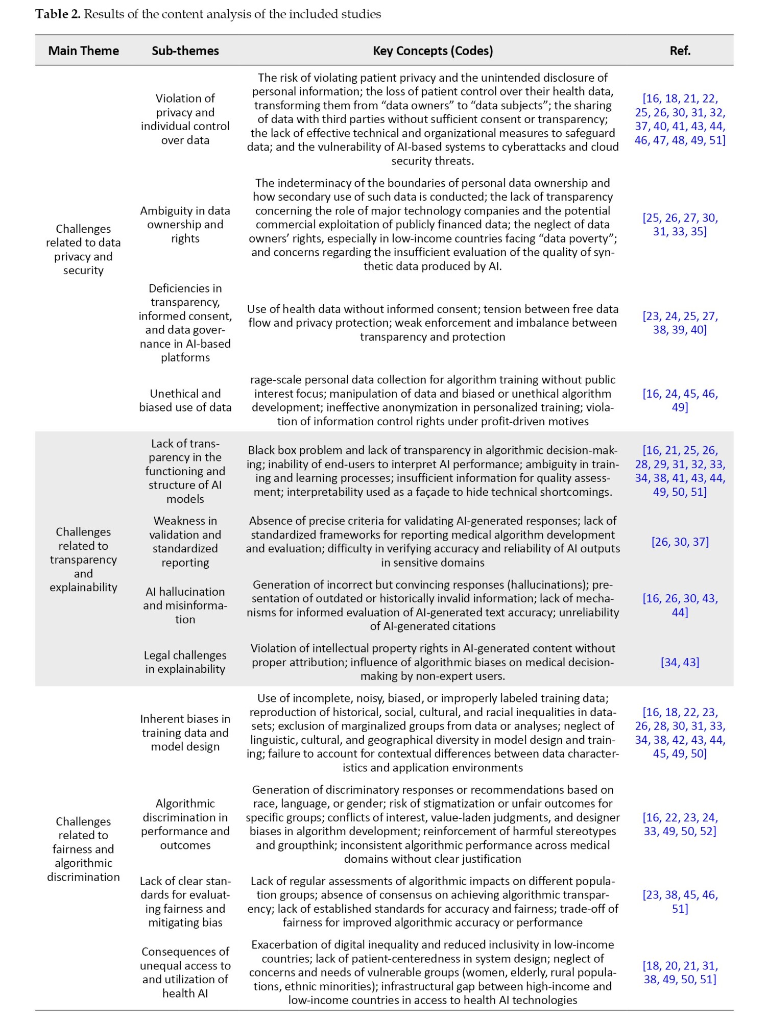 In the following section of the findings, a comparative analysis of this meta-synthesis article with existing review studies on the ethical challenges of AI in healthcare is presented. Subsequently,