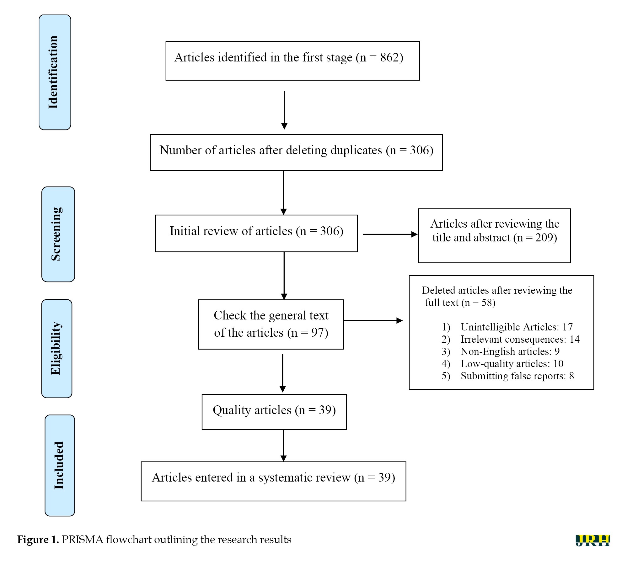 The abstracts of 862 published articles were initially screened, and duplicate entries were systematically removed through multiple stages. Following this rigorous selection and quality assessment process, a total of 39 articles were identified for comprehensive review and data extraction (