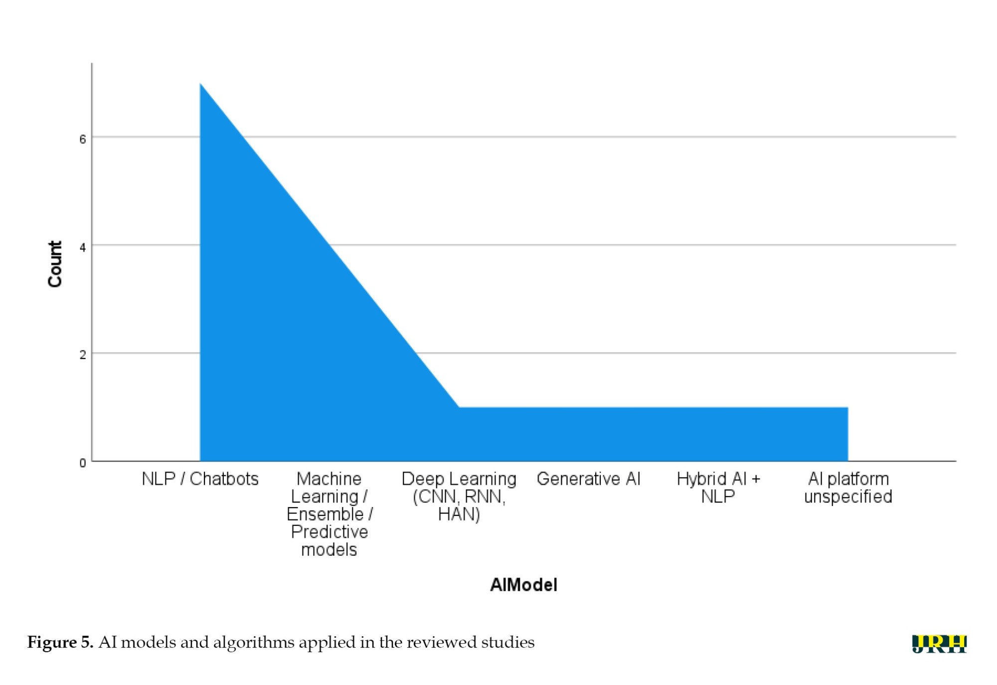 Figure 5 presents the distribution of AI models and computational approaches reported across the analyzed literature.